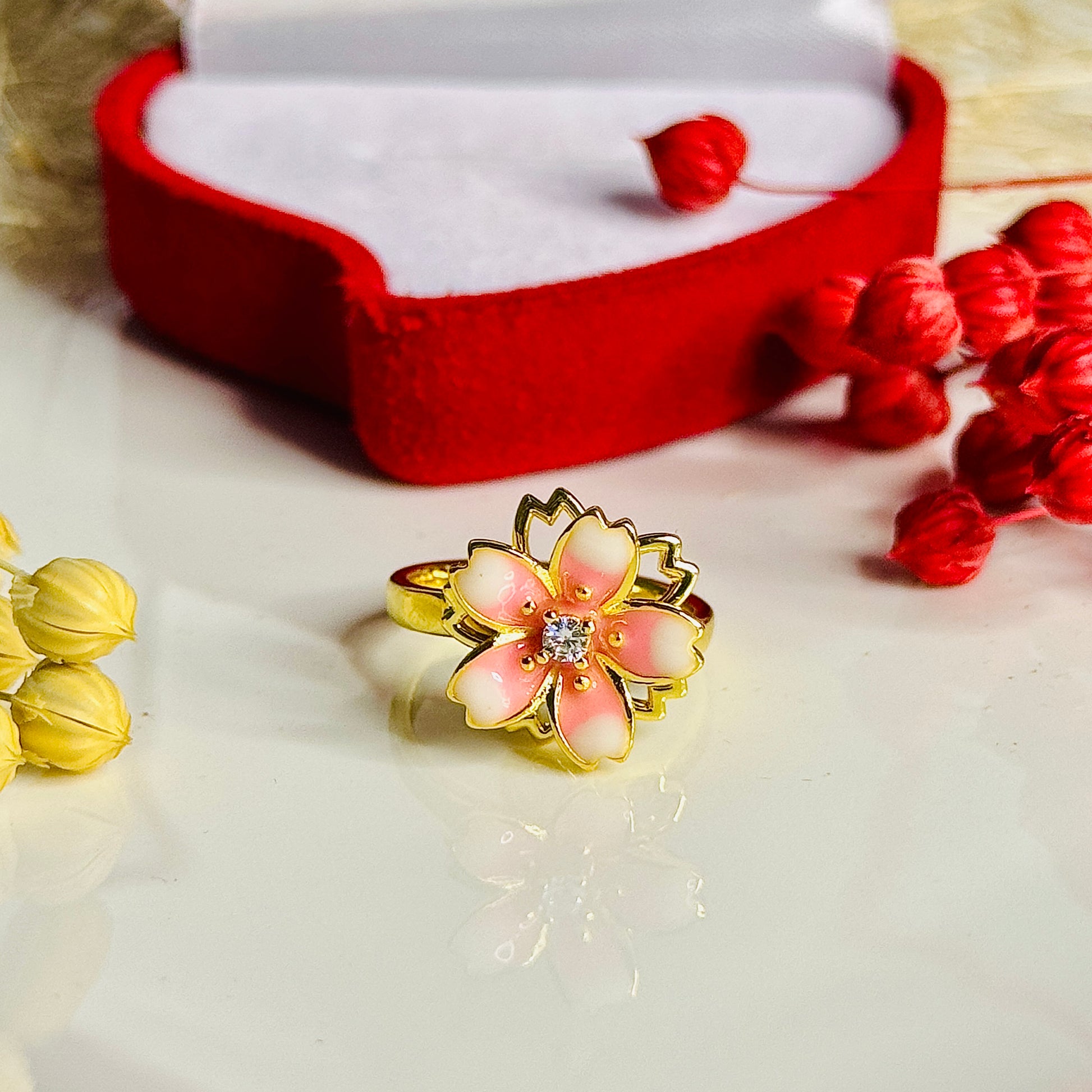 Altın Kaplama Dönebilen Kiraz Çiçeği Yüzük