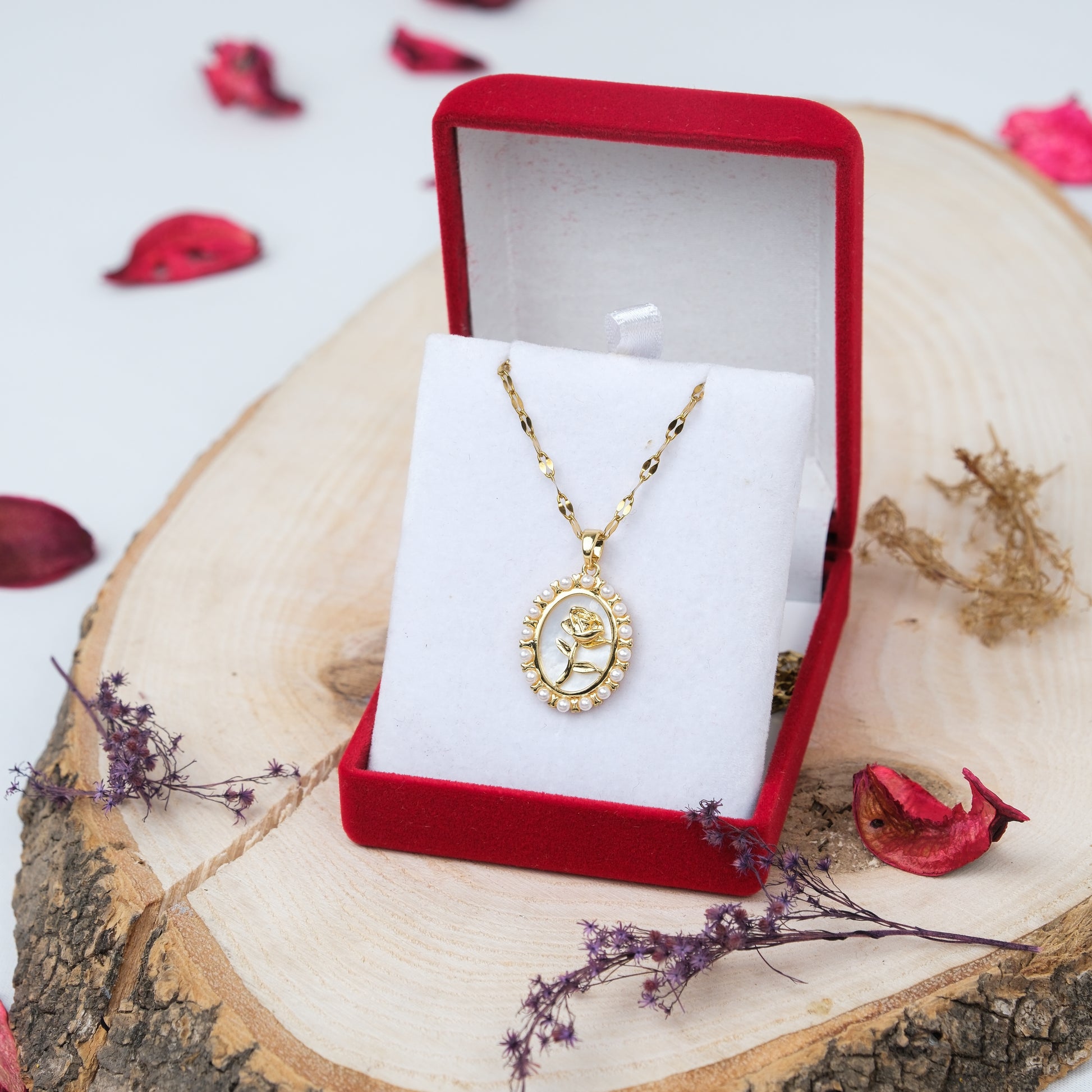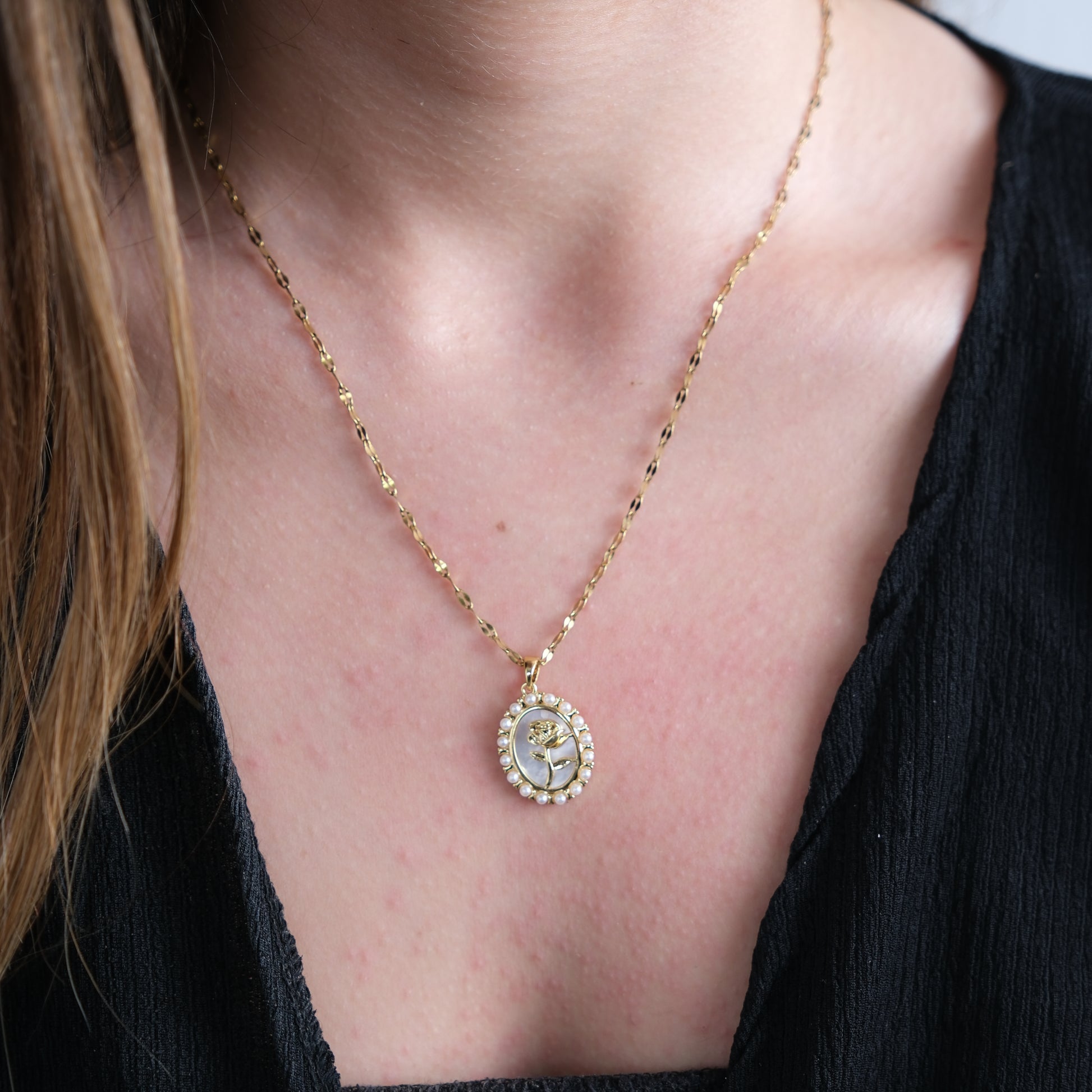 Altın Kaplama İnci Detaylı Güllü Kolye