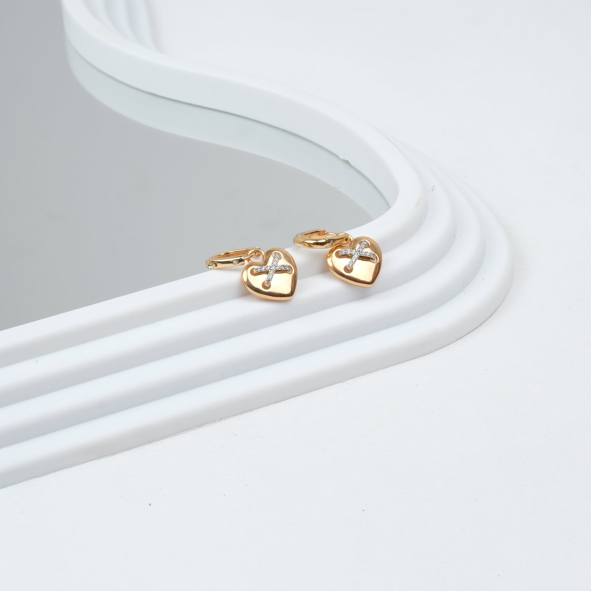 Altın Kaplama Taşlı Kalp Detay Küpe