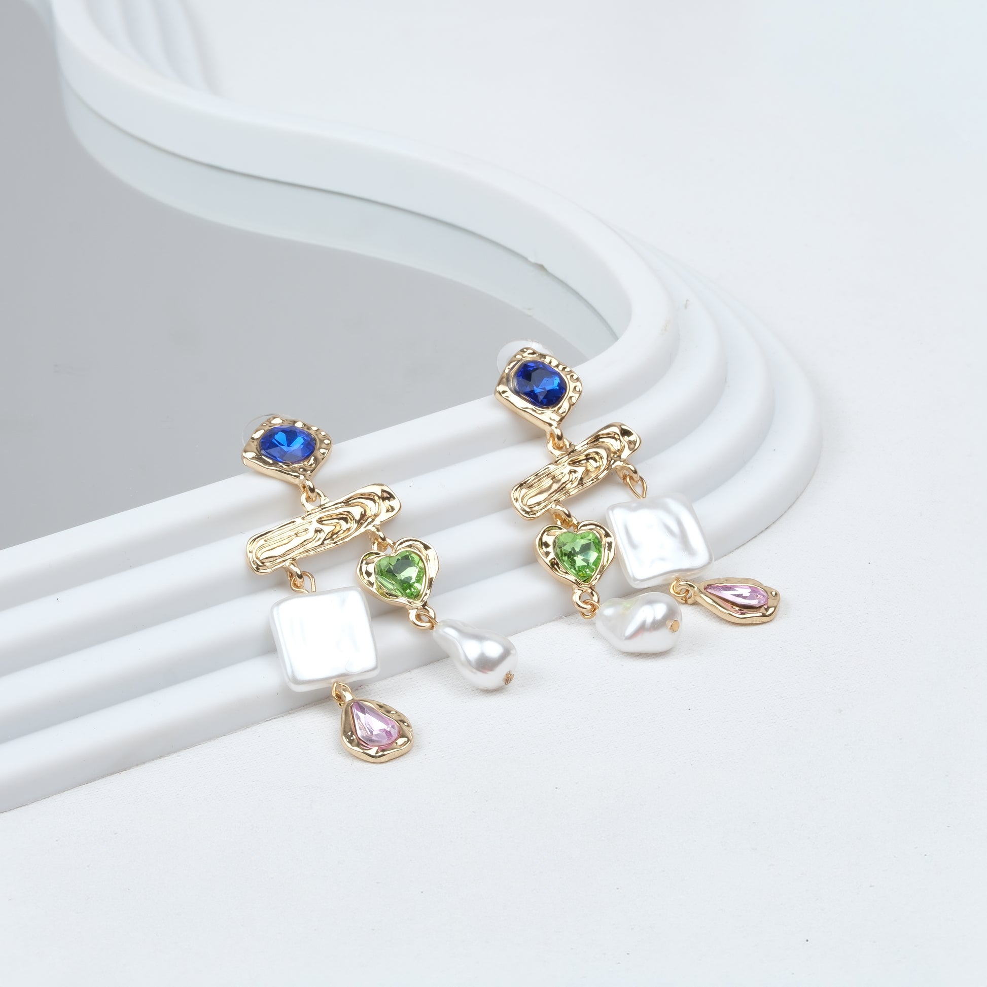 Altın Kaplama Y Renkli Taşlı Küpe