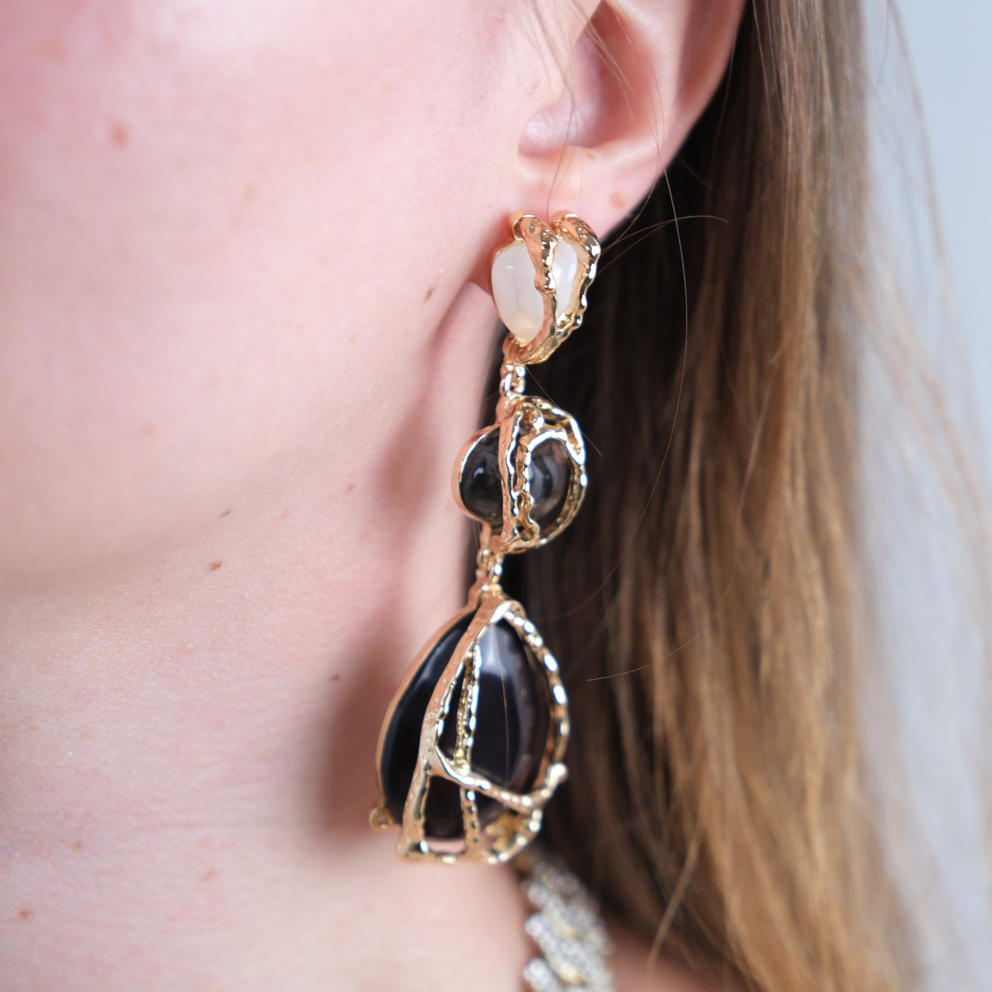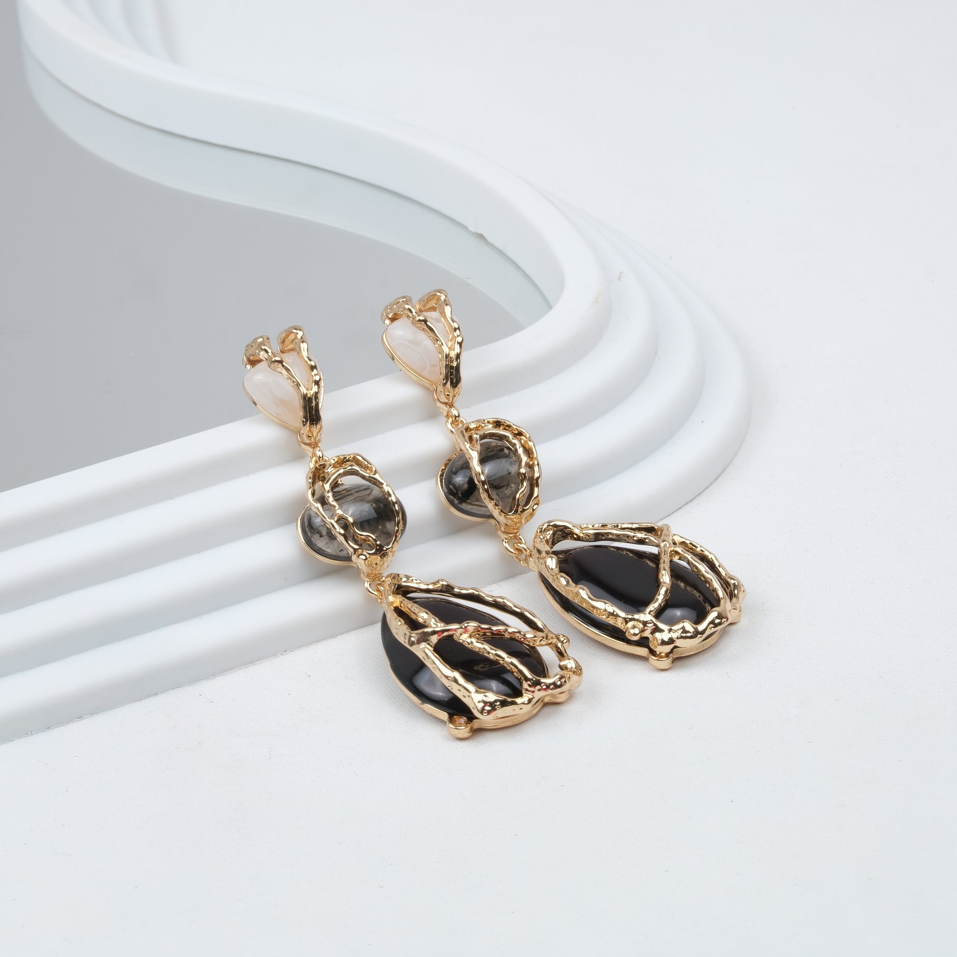 Altın Kaplama Zra Model Siyah Taşlı Küpe