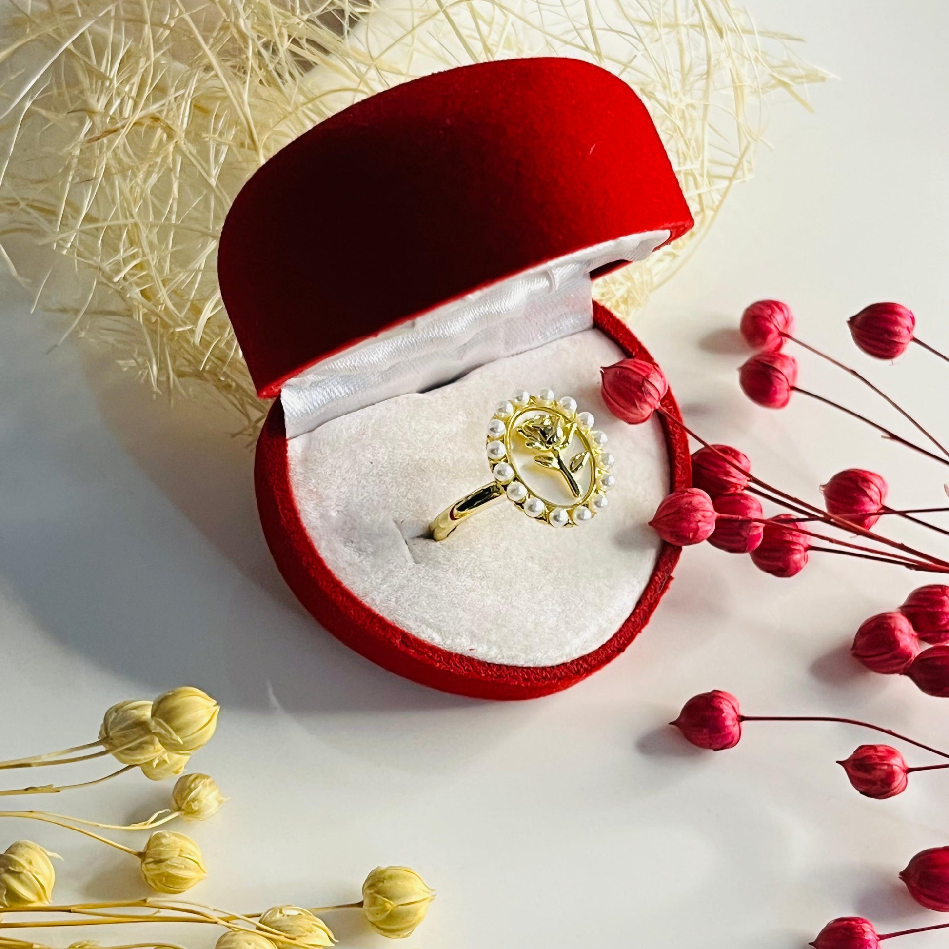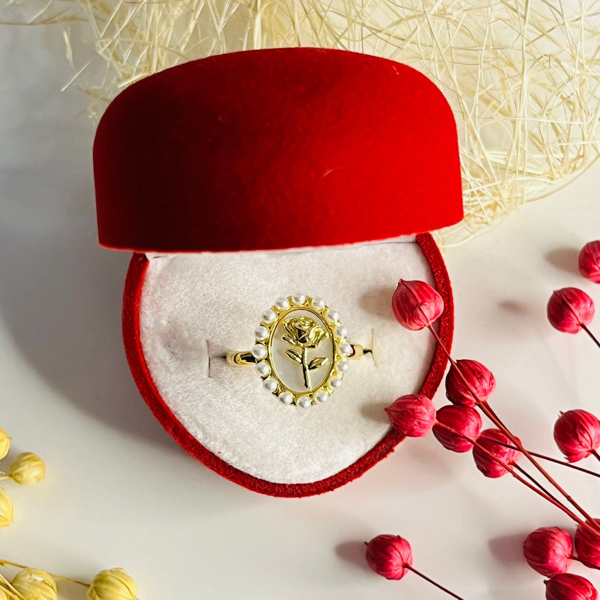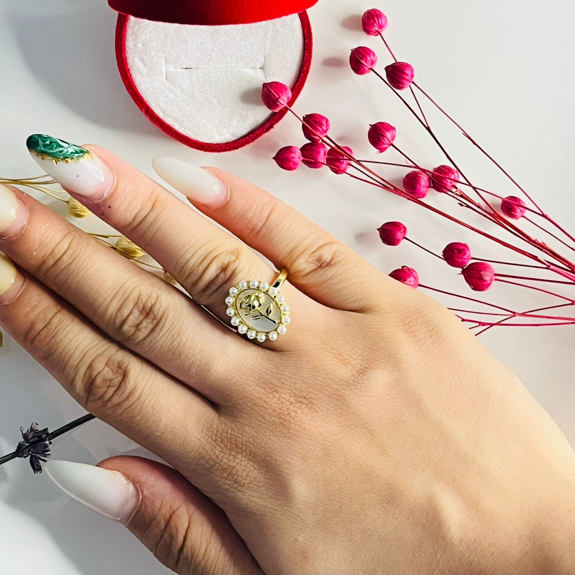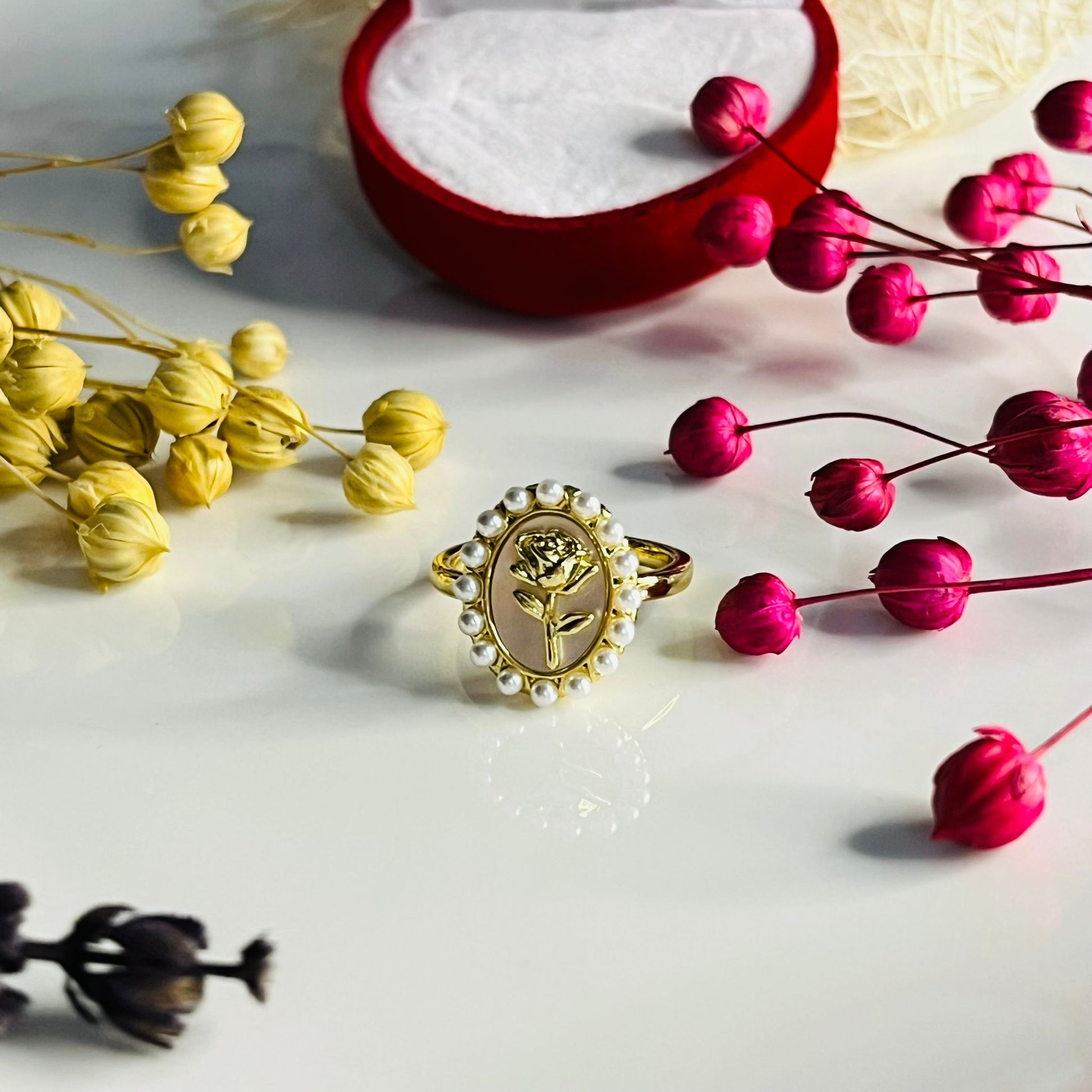Ayarlanabilir Gül Figürlü İnci Taşlı Yüzük 🌹